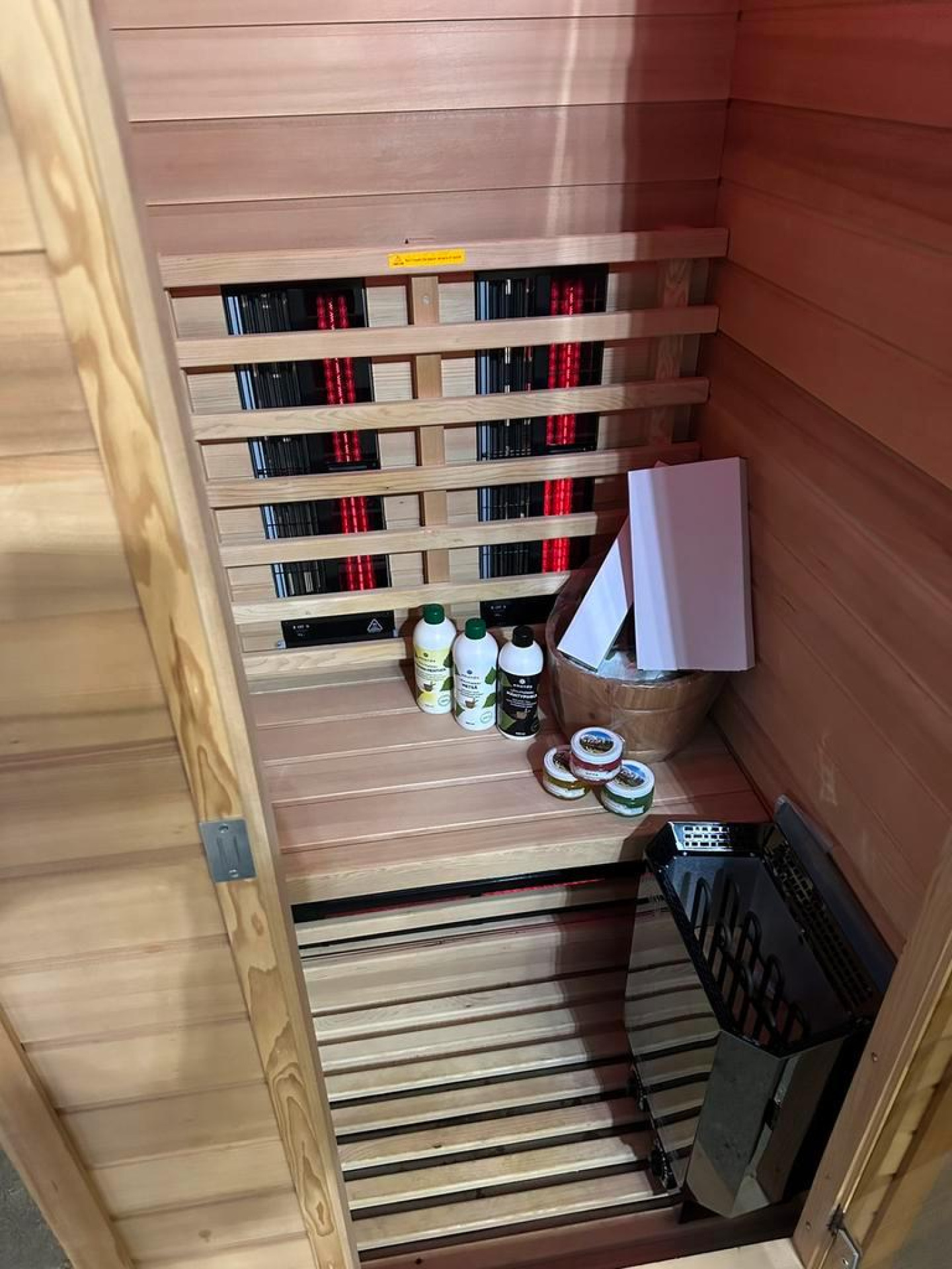 Super combi sauna met duo golf (korte en lange) stralers + finse opgietkachel