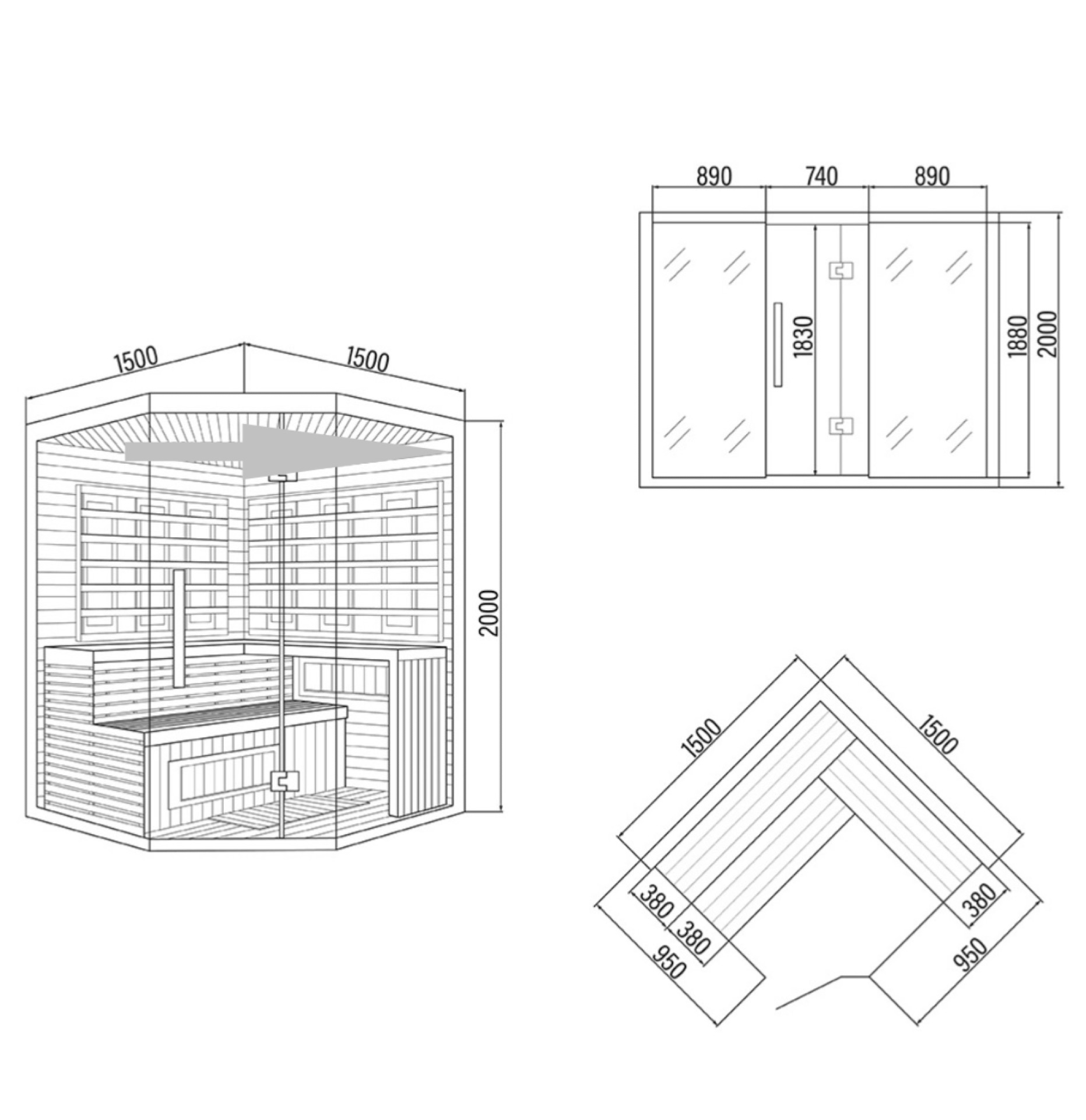 Combi Sauna Hemlock | 150x150 | 3.5kW Vega | RYZVG