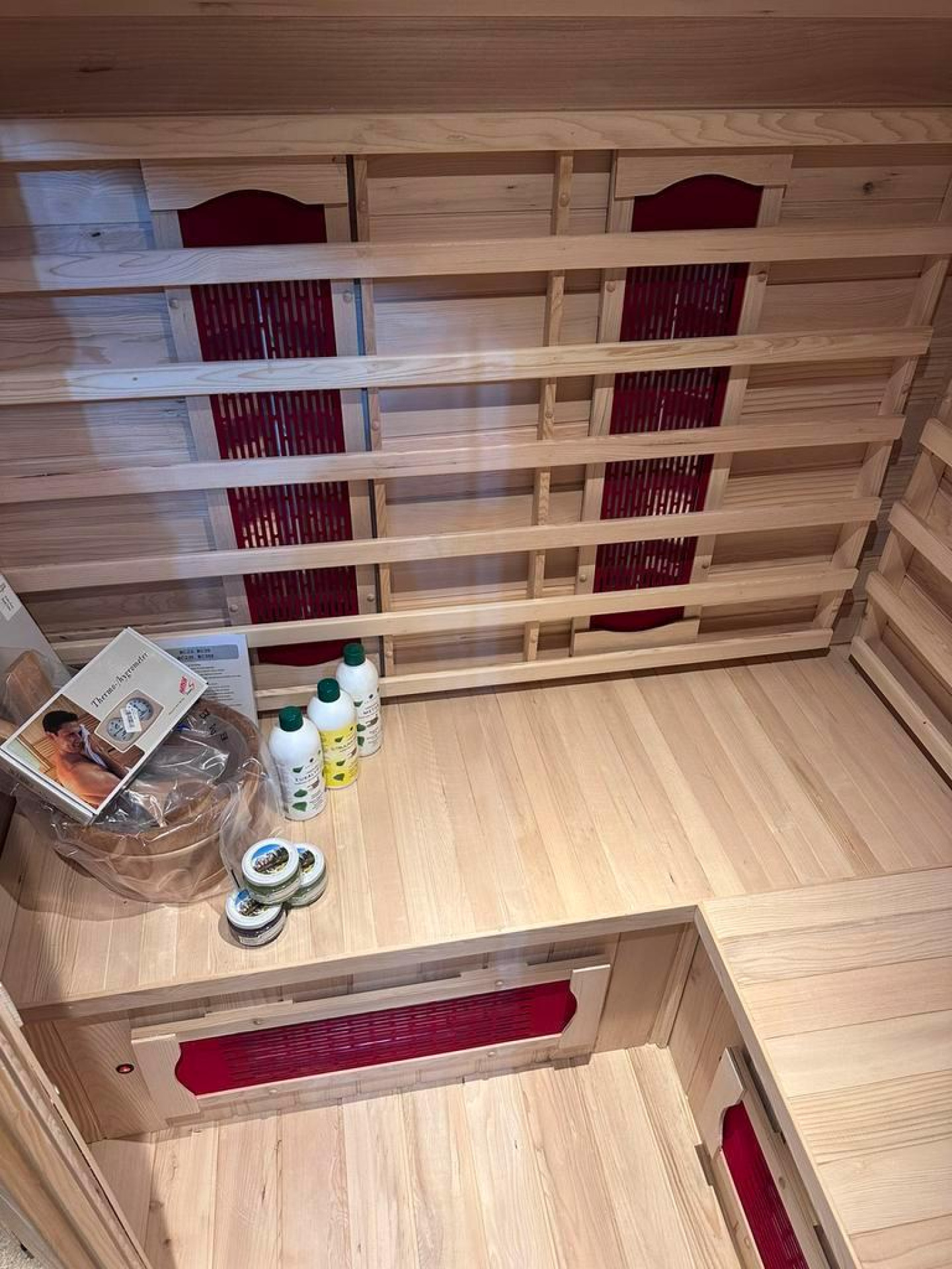 De sauna wordt nieuw uit doos geleverd, is eenvoudig te monteren en is binnen 45 minuten in elkaar gezet. Infrarood temperaturen in te stellen tot 60 graden. De sauna kun je binnen of buiten plaatsen onder een afdakje.