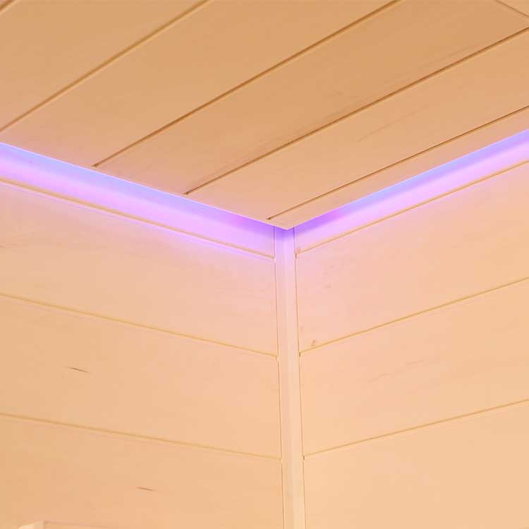 Of je nu een hoek van je badkamer benut, een plek in je tuin omtovert of een speciale wellnesskamer inricht, deze sauna voegt direct comfort en luxe toe. Het ontwerp is ruim genoeg om heerlijk ontspannen te zitten of liggen, zodat je elke sessie optimaal kunt beleven.