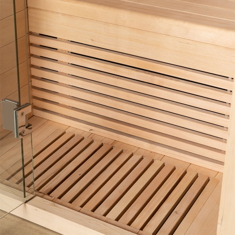 Of je nu een hoek van je badkamer benut, een plek in je tuin omtovert of een speciale wellnesskamer inricht, deze sauna voegt direct comfort en luxe toe. Het ontwerp is ruim genoeg om heerlijk ontspannen te zitten of liggen, zodat je elke sessie optimaal kunt beleven.