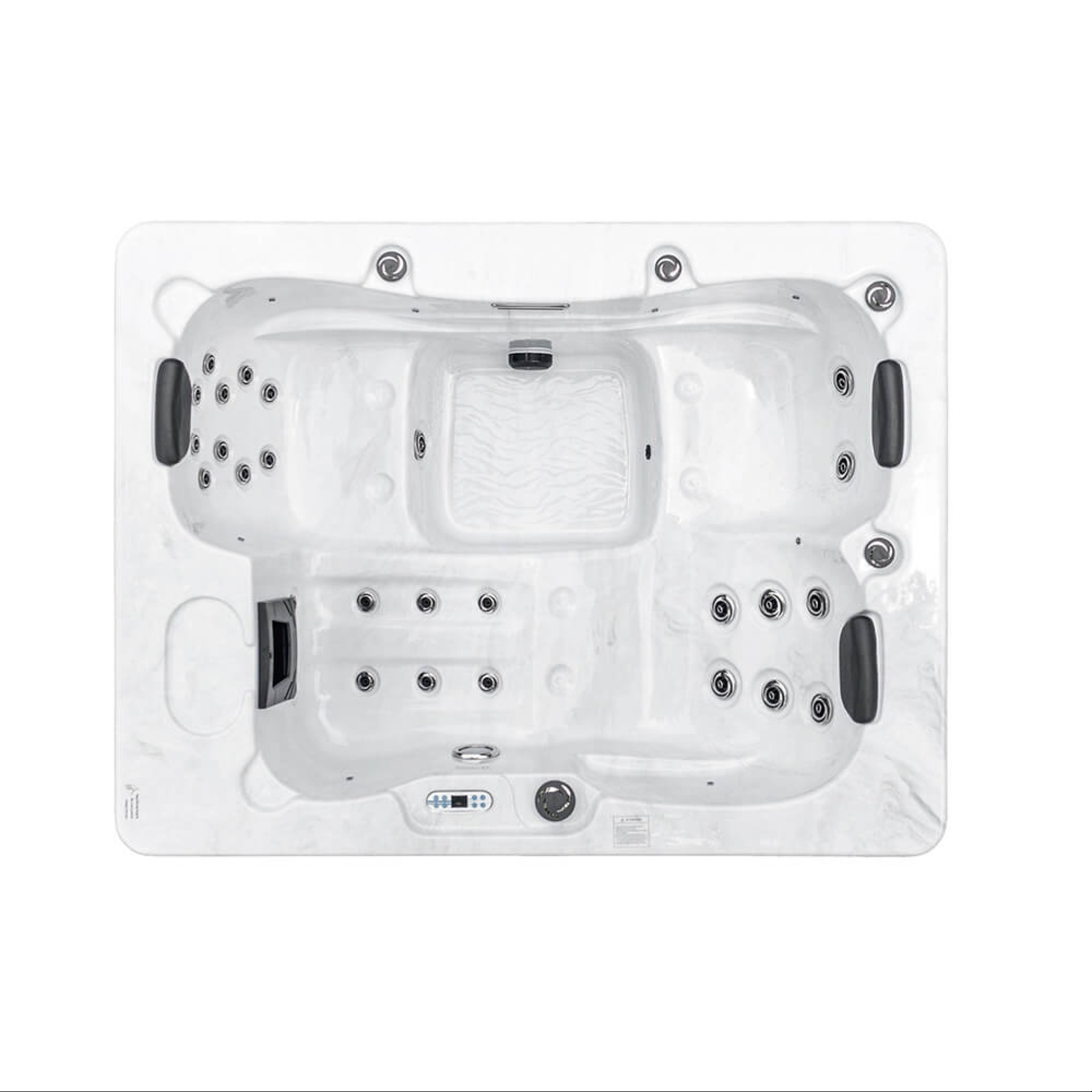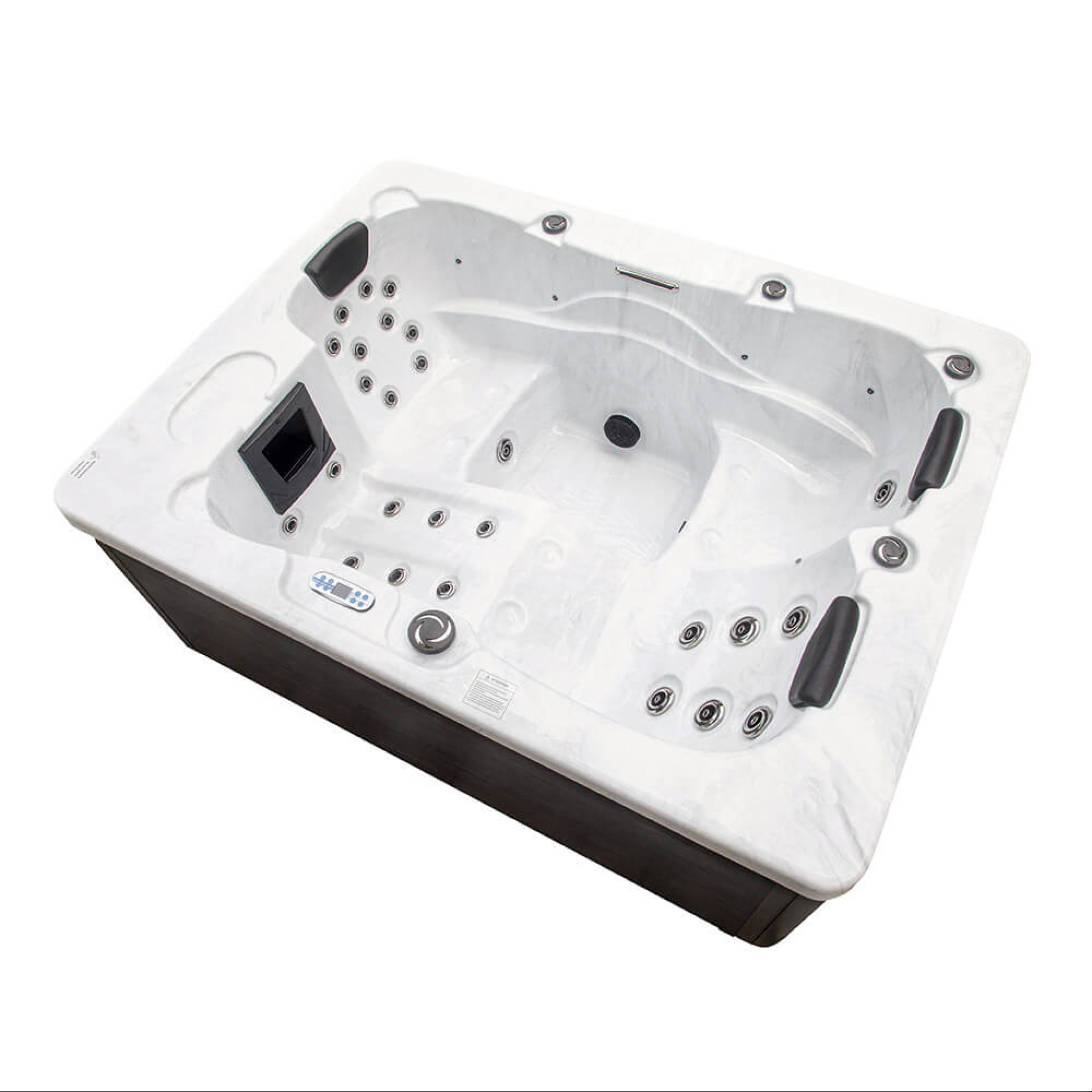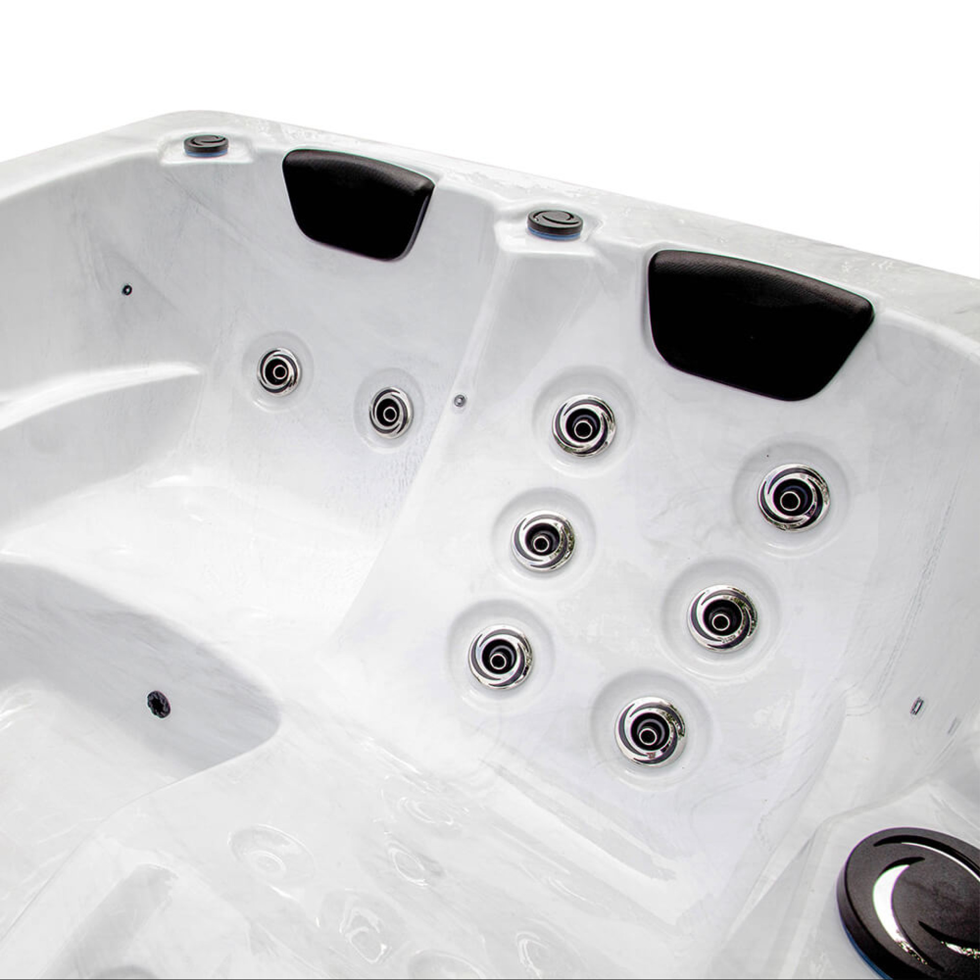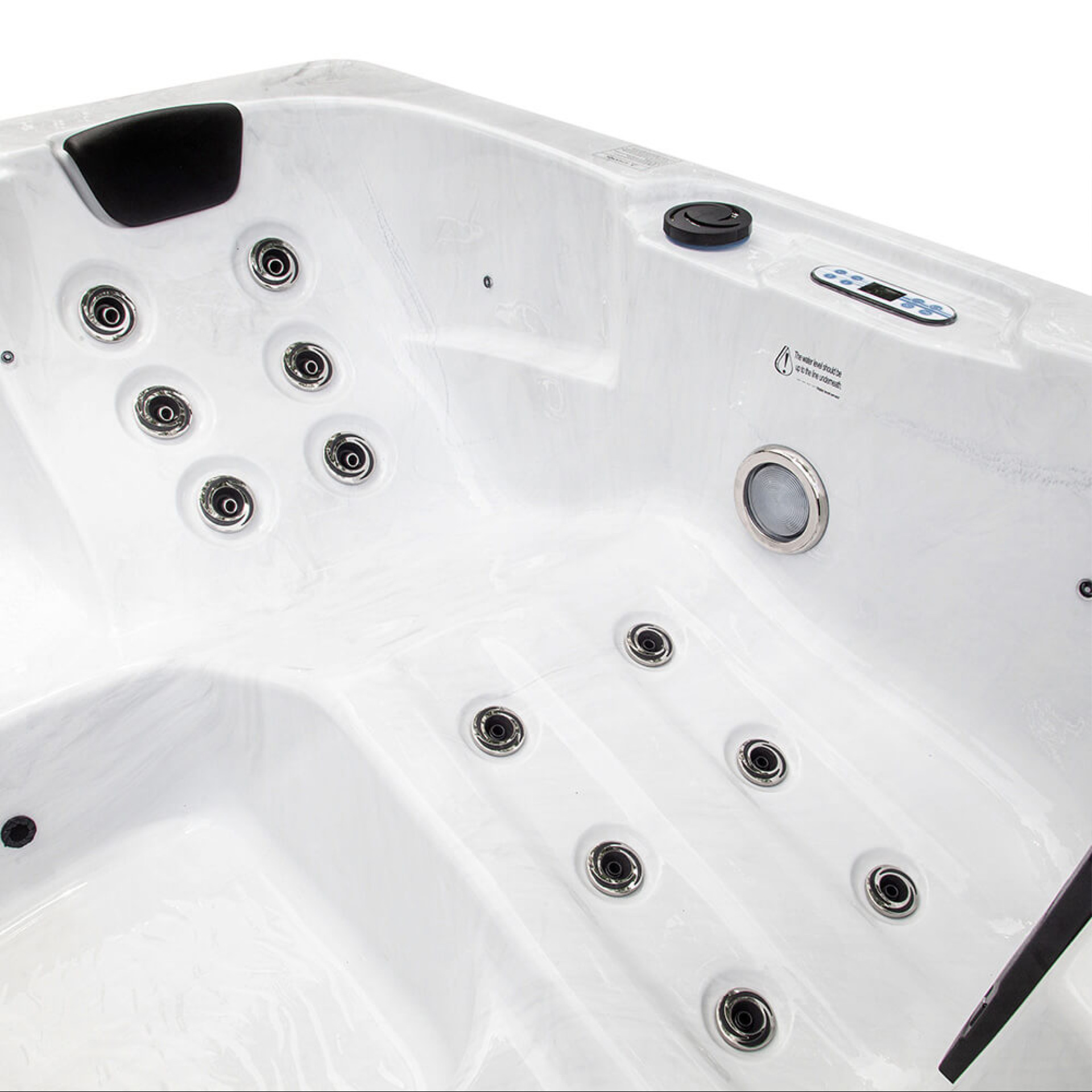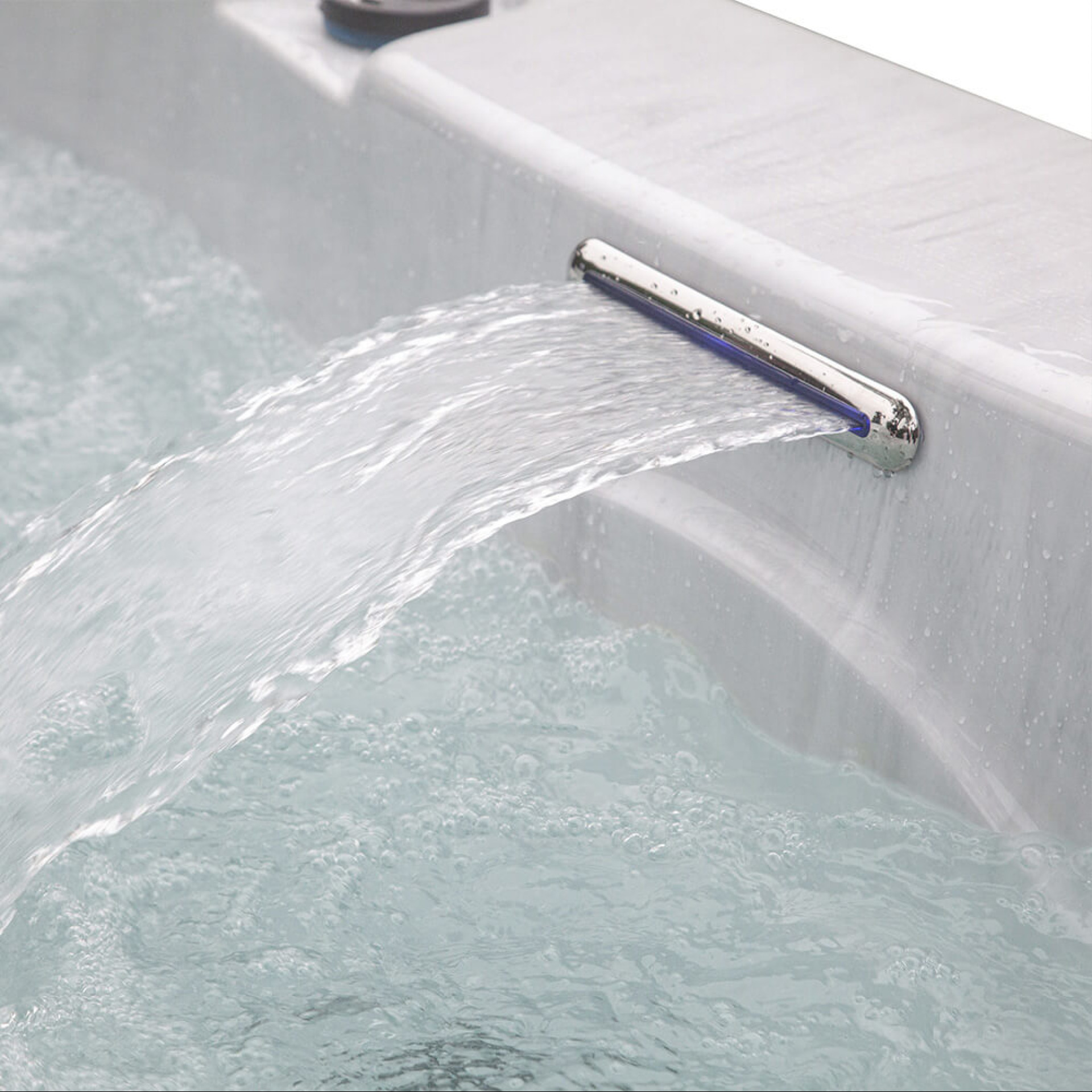 Trakteer uzelf op de luxe van maar liefst 27 jets die lichaam en geest stimuleren en zorgen voor een optimale massage-ervaring. Elk mondstuk kan individueel qua intensiteit en richting worden aangepast door er zachtjes aan te draaien. Het buitenzwembad is een visuele blikvanger dankzij de elegante marmering van het bad en de donkergrijze buitenbekleding van duurzaam WPC. Dankzij het compacte formaat past het zwembad in vrijwel elke tuin. De optisch en technisch hoogwaardige whirlpool kan ook op terrassen of in wintertuinen worden geplaatst.